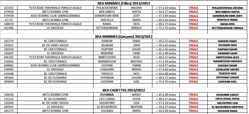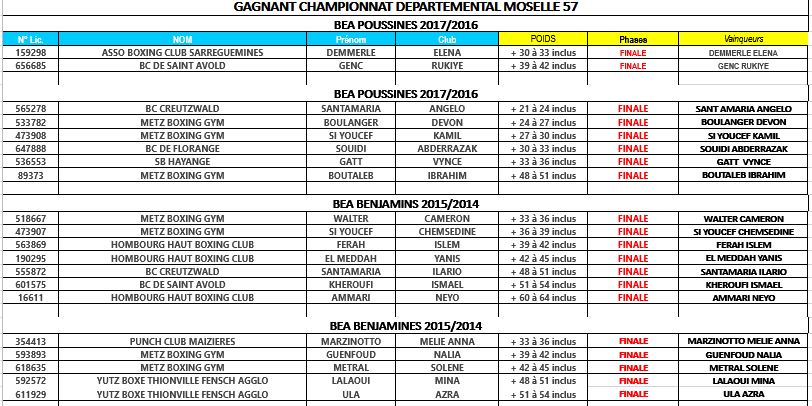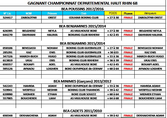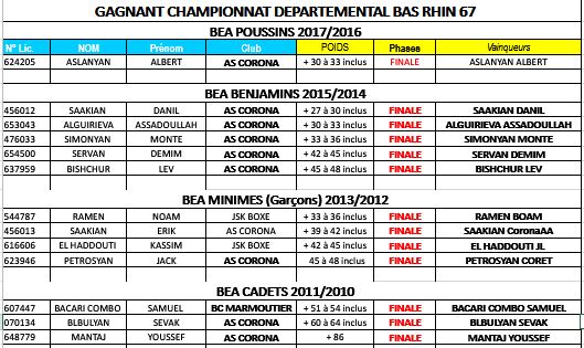Voici les résultats BEA des championnats départementaux qui se sont déroulés département par département courant Mars :